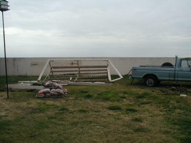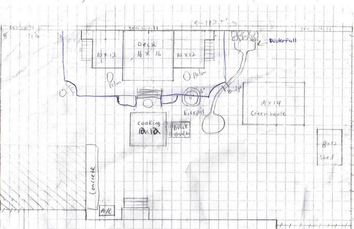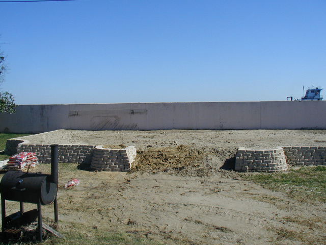 I am just beginning my biggest backyard project of all (see plan below): I am rebuilding the deck and creating an outdoor living area. The original deck was pretty rotten when I moved in . Despite this, it has held up well and even survived Hurricane Rita. When I tore it down this past weekend, much of the wood was still good, but it was rotten enough to be dangerous. The new deck will have three sections: a 16'X16" center section with a 12"X10" wing on each side. The stairs will be on each end. I want a sitting area under the deck. To do this, I wanted to lower the dirt level about 1 1/2 feet on the seawall to allow the top of the deck to be level with the top of the seawall while giving at least 7 feet of head room underneath. The Corps of Engineers would not allow this, so I have to bring in fill dirt to level the ground and the top of the deck will be above the top of the seawall. I have to build a retaining wall for this project and I started this project last weekend. I am also going to build a cooking area. This will be on a slab and will include gas and charcoal/wood cooking equipment. I am also going to build a wood-fired pizza oven similar to the ones in fine Italian restaurants. These make the best pizza ever. Go to Traditional Oven.Com for information about these pizza ovens. I am also going to add a firepit to sit around and I will eventually add a water fall with a stream that ends in a small pond. Between the greenhouse and the seawall I am going to have a small vineyard. I like to make wine and I have a few grape vines that I obtained from Messina-Hof Winery in Bryan, Texas. Each vine will produce about 55 pounds of grapes, or about 5 gallons of wine each.