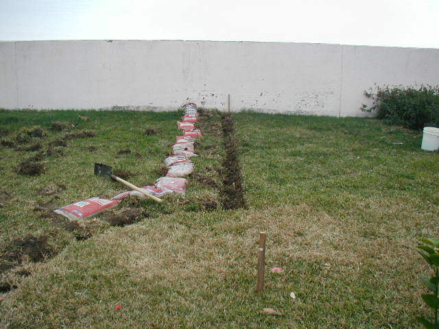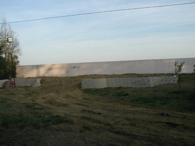 Retaining wall mostly complete. Five loads of fill dirt and counting....