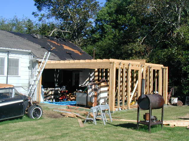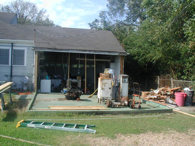 The first major project was extending the garage. The original garage was detached, but it was moved even with the main house at one point. An aluminum cover was erected over the old slab of the detached garage. I knocked out the back wall of the garage and extended it over the old slab to create a four car garage. I also reroofed the house at the same time with the best 30 year roof I could find. This really paid off: no damage from Hurricane Rita.